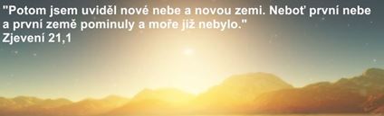 Přijetím Ježíše Krista za svého Pána přejdete do věčného života na nové znovuobnovené zemi do své rajské krásy. Tento třetí svět již bude definitivní a bude trvat navždy! Bible rozlišuje tři světy, první je již minulostí, druhý končící přítomností, a třetí blízkou budoucností.