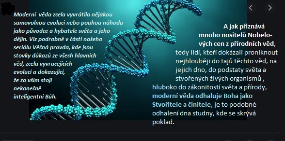 Stejně jako moderní věda ukazují nevyvratitelně na Boha biblická proroctví, poněvadž, je-li jejich autorem Bůh, se musela a musí všechna 100% naplnit. Bůh se nemůže mýlit. Bible je jedinečná v tom, že je to jediná náboženská kniha, která předpovídá budoucnost. Proroctví jsou dějiny napsané předem. Bible předpověděla události staletí před tím, než se staly, a to v živých podrobnostech. A to se do puntíku splnilo, opět podrobně v seriálu Věčná pravda, zde stačí napsat, Bible obsahuje tisíce proroctví, které se naprosto přesně naplňují a naplnily. Některá z nich určují i přesný rok událostí, přesná jména měst i vládců několik staletí dopředu, jejichž existenci potvrdila až moderní archeologie. I posloupnost i osudy říší, dotýkajících se svým umístěným a historickými událostmi Božího lidu. Příchod, život, smrt i zmrtvýchvstání Božího syna určilo přes 300 přesných proroctví, které se do detailu vyplnila. Biblická proroctví se vyplňují všechna, neboť jsou proroctvím od Boha. Tím se odlišují od falešných proroctvích, u kterých se něco vyplní a něco ne, která však tento svět upřednostňuje před Biblí, neboť pro lidi světského založení, pachtících se po poznání budoucích událostí, nevyvolávají žádné další znepokojivé otázky a neozývá se hlas svědomí volající po zodpovědnosti k Bohu. Proto se mnozí ateisté pídí po proroctví čistě od lidí, ale ne po těch, jejichž původcem je Vševědoucí Bůh, protože nechtějí zanechat svých hříchů a obrátit se ke Kristu a k Bohu.. →