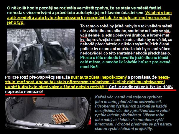 A proč Bůh zachránil zrovna tuto slečnu a už nikoho jiného? Za prvé tato slečna byla věřící a modila se k Němu každý den. Bůh především pomáhá těm, kdo věří v Jeho slova a berou je vážně. Mnohdy zahrańuje i ateisty, když má s nimi ještě nějaké plány nebo ví, že se ještě obrátí, protože je dobrotivý Otec a Stvořitel všech lidí, to je věc Boží a my nemůžeme ani se nemáme vše snažit vysvětlit. Zlo činí ďábel s Božím připuštěním, ale je pravdou, že tehdy to nikdo nechápal, proč to Bůh připustil, aby se to stalo, aby tolik vzdělaných a slušných lidí, jací prvorepublikoví soudcové většinou byli, a tehdy navíc byli většinou věřící, takhle hrozně rázem zahynulo. Ale po roce 1948 se alespoň zčásti odhalil možný důvod této katastrofy. Diktátorský komunistický režim po uchopení moci v únoru 1948 v Československu, pozavíral do svých koncentráků mnoho lidí, nejen přímých odpůrců, ale především čestné lidi na vysokých místech v demokratickém systému, aby se plně zmocnil moci a nahradil je svými lidmi, schopnými jakéhokoliv bezpráví a zločinů. A to soudcové vždy patří mezi mocenské pilíře režimu, ale tito patřili mezi ochránce a zastánce práva a demokracie, byli to členové Nejvyššího soudu. A tak by se jich komunisté stejně zbavili. Takto zemřeli rychle, a nedočkali se strašných hrůz, které by je čekaly, protože komunisté by je po převratu hned zatkli, nejprve mučili, aby podepsali jimi předem sestavené přiznání, jak bylo běžnou praxí v tzv.monstrprocesech, viz Slánský a další, nebo umučili, jako faráře Toufara a další zavřeli na mnoho let a pak by v komunistických koncentrácích čelili nezměrnému utrpení a mnozí umírali hůře než zvířata. Stačí si přečíst pár knih, kde jsou zpracována historická fakta o zvůli komunistických režimů a jejich lágrech, jako například je kniha „Zpráva o organizovaném násilí“ a další nebo přímo zápisy pamětníků, politických vězňů, přeživších komunistické kriminály, tato svědectví mnohdy vypovídají, že mnohé komunistické lágry a věznice si zacházením s vězni nezadaly s nacistickými koncentráky. Byly organizovány dle sovětských vzorů, o tom, jak se trpělo a umíralo v sovětských komunistických lágrech, také dostatečně píše světově známý ruský spisovatel, nositel Nobeloby ceny, Alexandr Solženicyn, který to všechno zažil a sepsal i osudy dalších lidí. Profesor Kurganov, který je stalinisty a skalními komunisty často napadán, a kterého prýávě cituje Alexandr I.Solženicyn, uvádí, že celkový počet obětí stalinského režimu činil přibližně 66 miliónů lidí a k tomu ještě je nutno přičítat dalších 44 miliónů zbytečných obětí ve 2.světové válce, zaviněných Stalinovou ledabylostí, čistkami (odstraněním schopných velitelů) a agresivitou, protože po uzavření paktu o spolupráci s Hitlerem se Stalin připravoval ne na obrannou válku, ale na útočnou, proto mohly fašistické armády tak rychle postupovat(toto tvrzení je perfektně doloženo a vysvětleno v knize "Všechno bylo jinak." Tedy celkem má komunistický režim nejprve v čele s Leninem a pak s absolutním diktátorem Stalinem na svědomí za prvních cca 40 let své existence v SSSR cca 110 miliónů lidí.