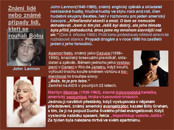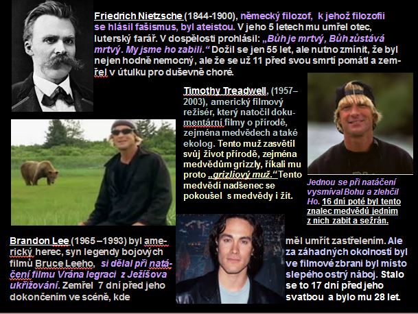 Bůh také - protože je absolutně spravedlivý - nezůstane nikomu nic dlužen. I ateistu, když vykoná něco dobrého, za to odmění, zvláště když ví, že se neobrátí a že mu tedy nemůže dát věčný život, stejně jako potrestá ty, kdo se mu drze vysmívají a ne ho jen pouze odmítají. Zde jako ukázku ze seriálu Věčná pravda uveďme pár příkladů lidí, kteří si dovolili Boha urazit a jak špatně skončili, protože Bible jasně říká: "Nemylte se, Bůh se nenechá posmívat". (poznámka: tady -protože je to výstřižek - plošná kopie, jsou červené části hůře čitelné, ale tam v seriálu je to normálně čitelné)