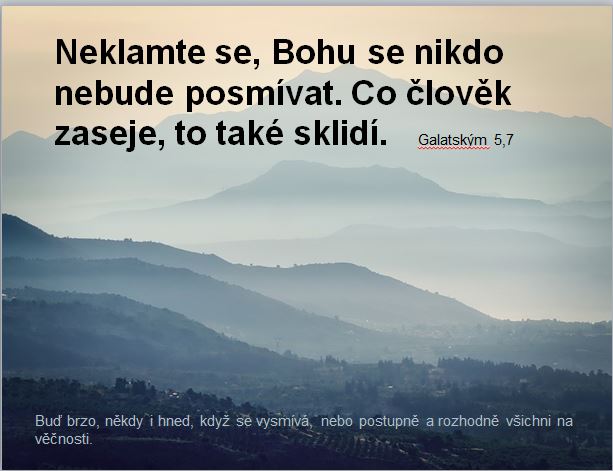"Mnoho bolestí postihne svévolníka, toho však, kdo doufá v Hospodina, obklopuje milosrdenství." Žalmy 32, 10