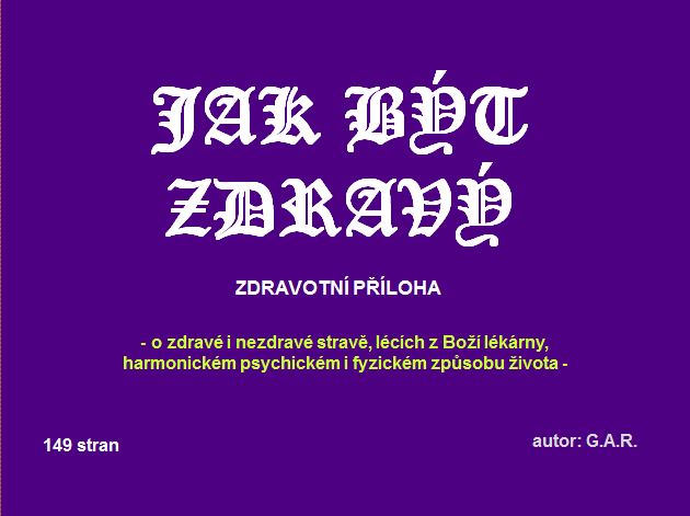 Zde si můžete otevřít přílohu o zdraví, kde jsou uvedeny mnohé převratné moderní poznatky o výživě, které potvrzují Bohem dané znalosti o výživě. Je zde také uveden hlavní zdravotní přínos různých druhů ovoce a zeleniny, ovšem z časových důvodů nejsou obsaženy ani ty všechny u nás pěstované, důraz však byl kladen na ty nejběžněji konzumované a nejvíce známé, ovšem na druhé straně byly uvedeny i některé málo známé druhy, za to ale maximálně přínosné. Jsou zde uvedeny i doporučení na 2 nejlepší přednášky o výživě od nejlepšího odborníka naší doby. K otvření klikněte níže na zelený podtržený text nadpisu.