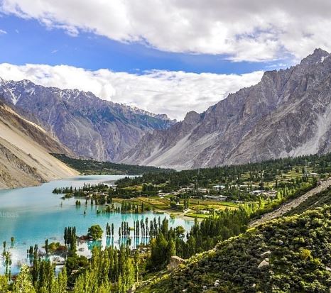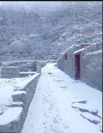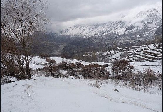 vesnice Hunzů v zimě jezero Attabad