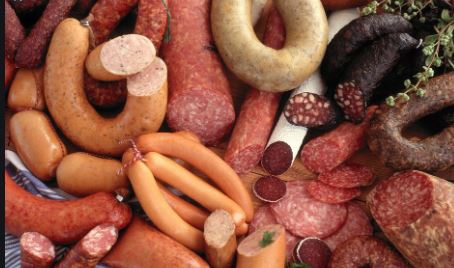 Maso (skoro všechny druhy). Nejhorší je uzené maso. Uzeniny.